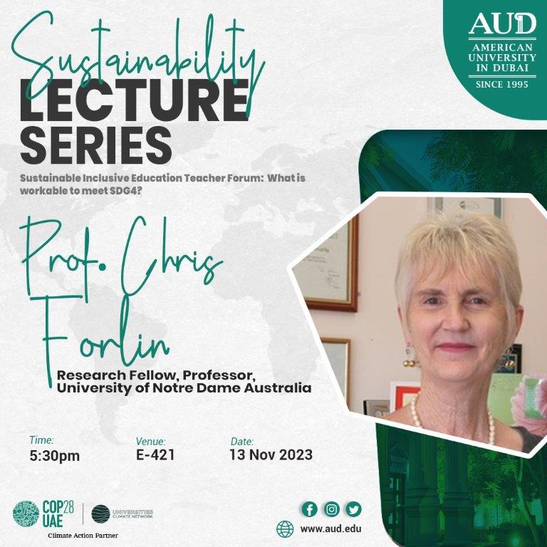 Prof. Chris Forlin of the University of Notre Dame, Australia, where she will delve into the